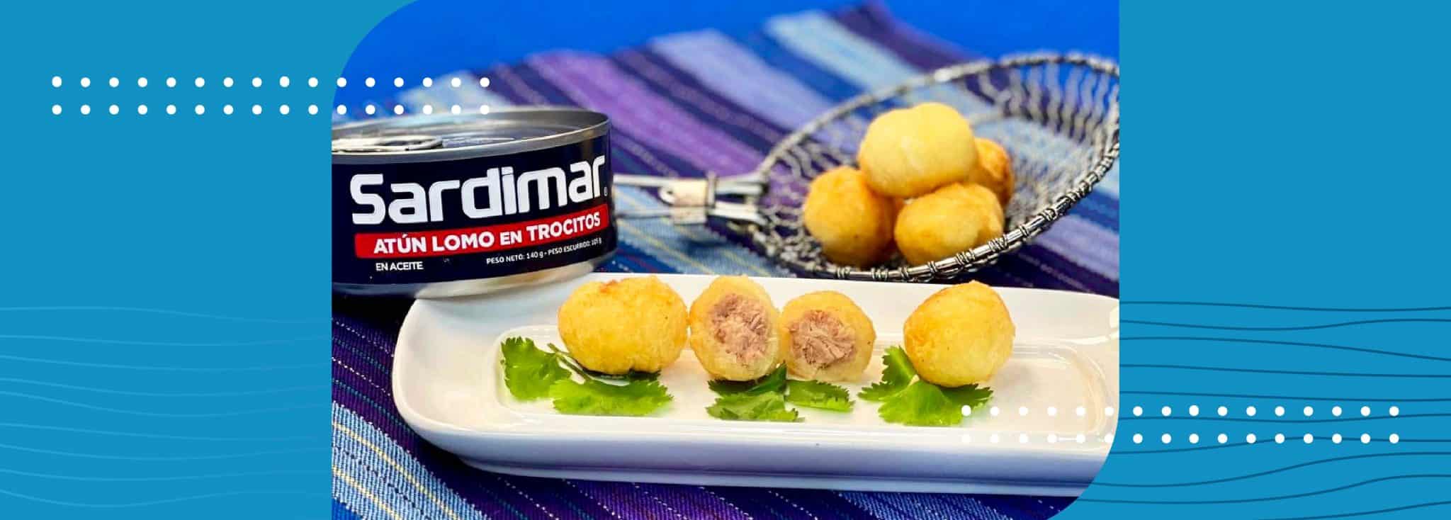 - Dividimos en 24 porciones y, con las manos enharinadas, formamos tortillitas las rellenamos con el atún SARDIMAR y formamos las bolitas.