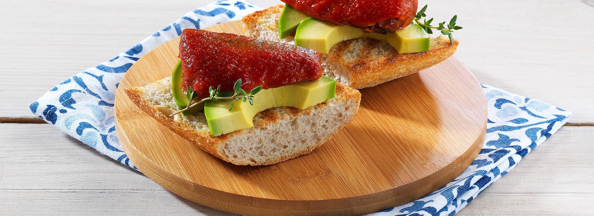 - Luego le ponemos aguacate cortado y encima la sardina en salsa de tomate picante
