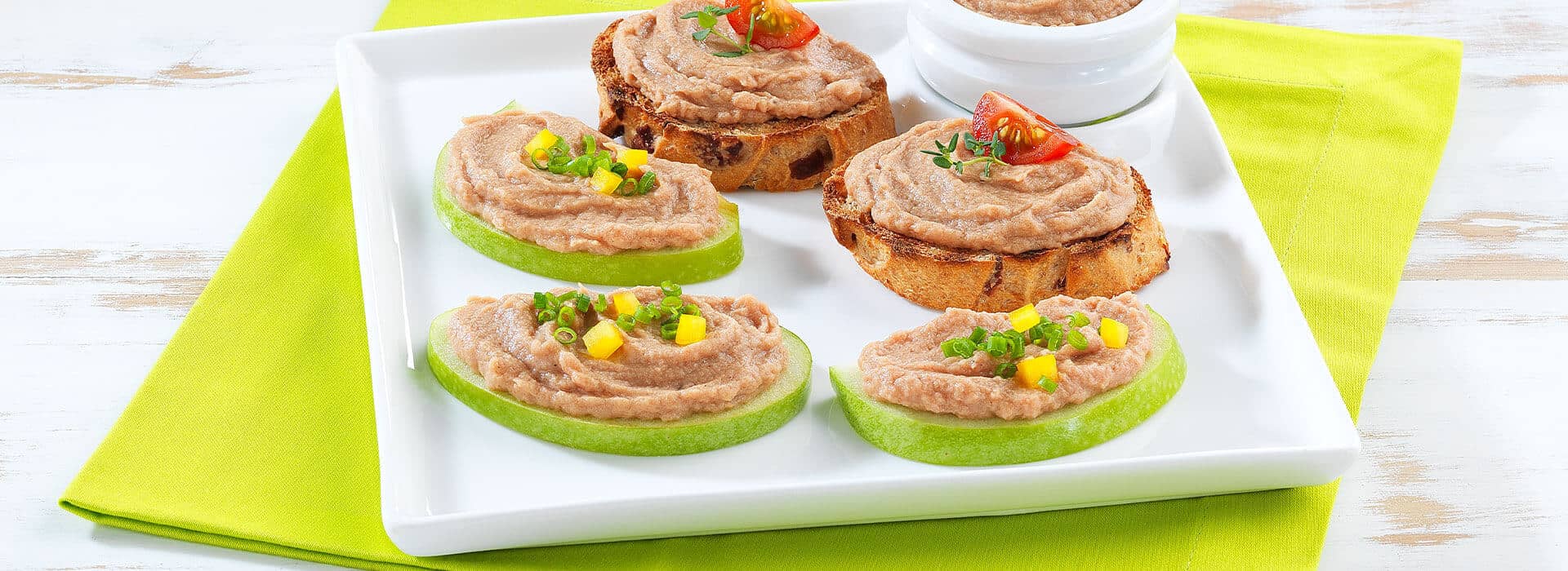 - Montamos sobre el pan una cda de paté, luego decoramos con los cubitos de manzana los cherrys y el jalapeño.
