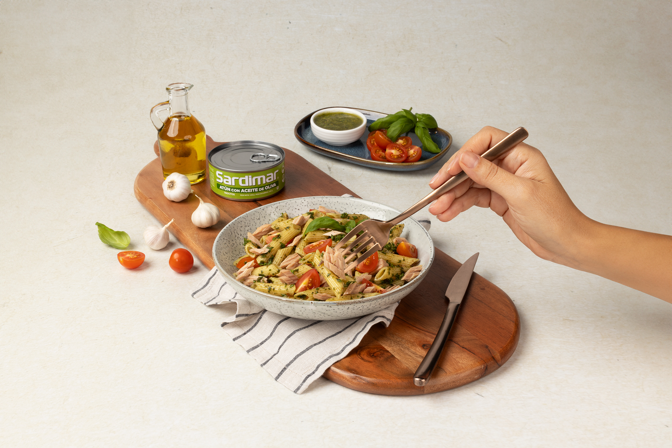 - Mezclar el pesto junto con la mezcla de atún con pasta y salpimentar al gusto.