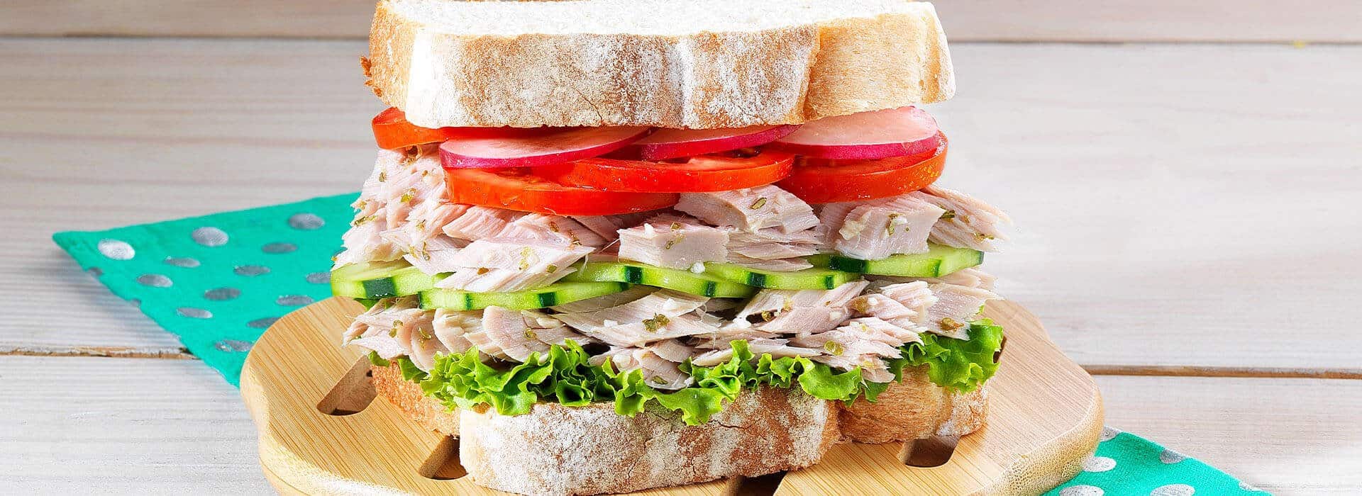 - Sobre el pan vamos a montar la lechuga, luego el atún y una capa de pepino, otra capa de atún y por último el tomate y más rábanos. Como opción, podemos añadir entre las capas mayonesa al gusto.